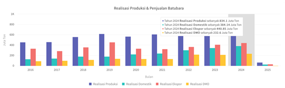 Dengan target RKAB 3 (tiga) tahun ke depan sampai 2026, dan target produksi batubara ESDM di 2025 sebesar 735 juta ton, dapat diproyeksikan rasio produksi nasional bisa jadi sebatas mencapai 15 tahun sampai 20 tahun. Apalagi realisasi produksi batubara nasional selalu lebih tinggi dari target yang diberikan Kementerian ESDM (data Modi ESDM). Tahun 2024, realisasi produksi batubara nasional naik menjadi sebesar 834 juta ton, atau 117 % dari 710 juta ton target Kementerian ESDM.