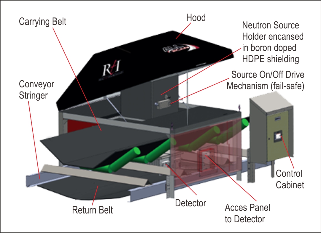 Tidak seperti kebanyakan merek PGNAA di pasaran, geometri mesin AllScan disusun untuk meletakkan pembangkit neutron atau sumber Cf252 di atas conveyor belt serta memposisikan detektor di bawah ban. Diagram konfigurasi AllScan digambarkan seba-gai berikut: