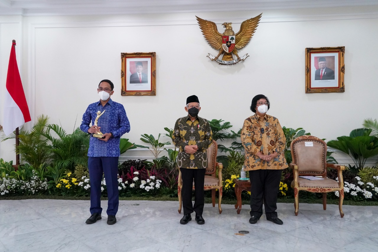 Direktur Operasional & HSE PT Berau Coal Arief Wiedhartono dan General Manager System Compliance & Environment PT Berau Coal Febriwiadi Djali menerima langsung Penghargaan PROPER Emas dari Wakil Presiden KH. Ma’ruf Amin yang disaksikan Menteri Lingkungan Hidup dan Kehutanan Siti Nurbaya.