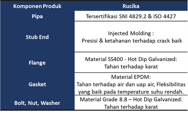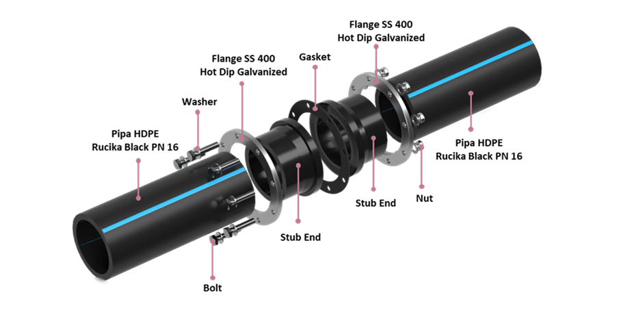 Rucika menghadirkan Spool Pipe HDPE Rucika Black merupakan rangkaian pipa HDPE yang telah disambung dengan stub end dan flange di kedua sisinya, dengan sambungan flange menjadikan Spool Pipe HDPE Rucika Black mudah untuk dilepas dan dipasang. Spool Pipe HDPE Rucika Black terdiri dari beberapa komponen yaitu,