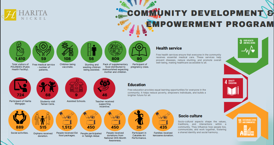 “Kehadiran industri tambang tidak hanya membuka peluang kerja, tetapi juga membuka peluang berusaha. Masyarakat yang mau mengikuti syarat dan ketentuan perusahaan baik dari segi kualitas, kuantitas dan kontinuitasnya bisa menjadi penyuplai kebutuhan perusahaan. Ini peluang usaha yang luar biasa,”kata Dindin Makinudin, Community Affairs General Manager Harita Nickel.