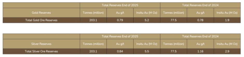 Berdasarkan estimasi terbaru ini, total Ore Reserves Perseroan meningkat menjadi 203,1 juta ton bijih dengan kadar rata-rata 0,79 g/t emas, yang mengandung sekitar 5,2 juta ounces emas.Angka ini meningkat signifikan dibandingkan Ore Reserve yang dilaporkan di Oktober 2025 sebesar 190,3 juta ton bijih yang mengandung 4,8 juta ounces emas dan Ore Reserve akhir 2024 sebesar 77,5 juta ton dengan kandungan sekitar 1,9 juta ounces emas.