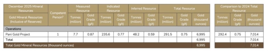 Tabel 2: Mineral Resource Emas per Desember 2025 (termasuk Ore Reserves)