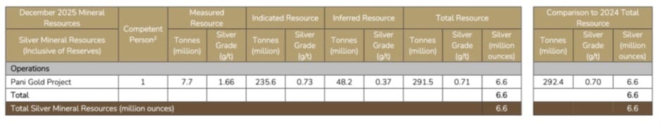 Tabel 3: Mineral Resource Perak per Desember 2025 (termasuk Ore Reserves)
