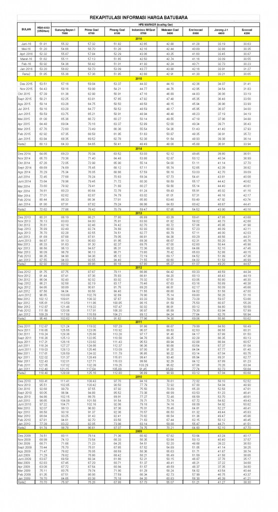 Jakarta-TAMBANG. Harga batu bara masih belum stabil. Ini terlhat dari pergerakan harga Harga Acuan Batu bara (HBA) yang dikeluarkan oleh Kementrian ESDM. Setelah menguat di bulan Maret dan April pada Bulan Mei harga yang menjadi acuan bagi pasar batu bara domestik ini mengalami koreksi ke US$51,2 per ton. Namun memasuki bulan Harga si emas hitam ini menguat menjadi US$51,81 per ton. Harga rata-rata HBA dalam enam bulan di tahun 2016 ini US$51,81 per ton.