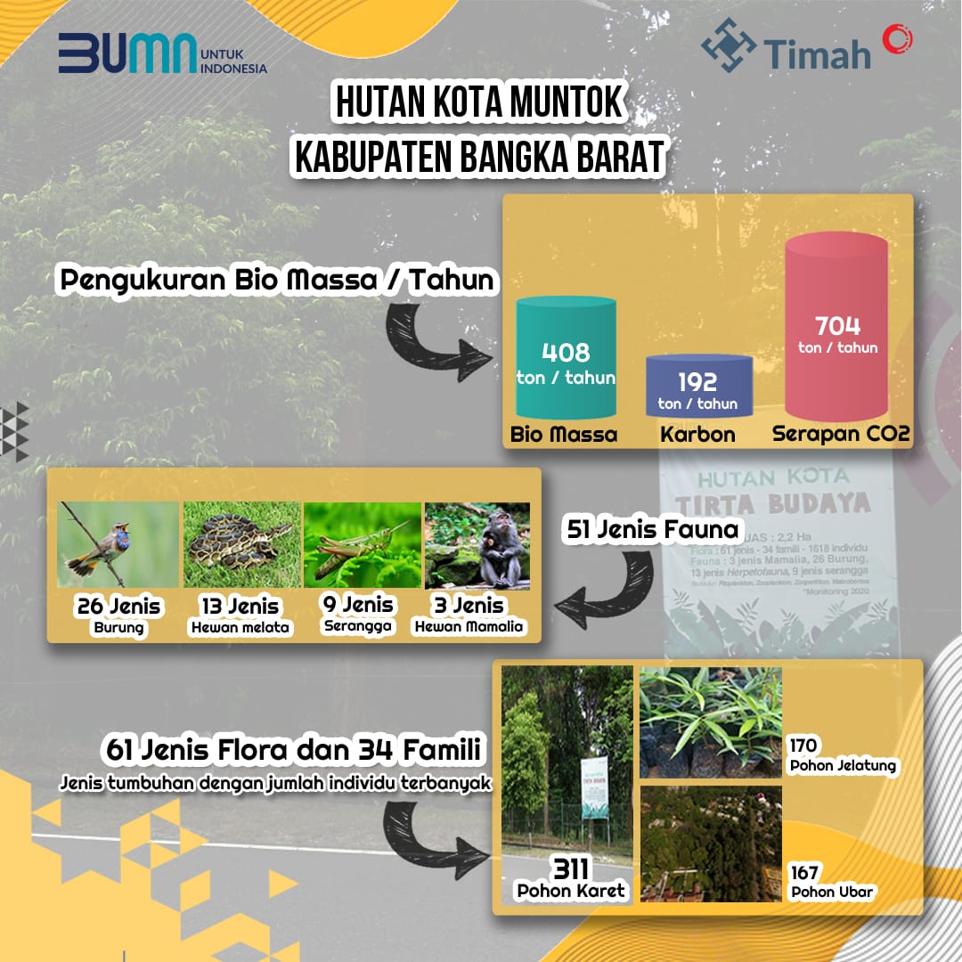 Sementara itu, Bupati Bangka Barat Sukirman turut mengapresiasi upaya PT Timah dalam mengelola Hutan Kota Muntok dalam menjaga ekosistem keaneragaman hayati dan juga lingkungan.