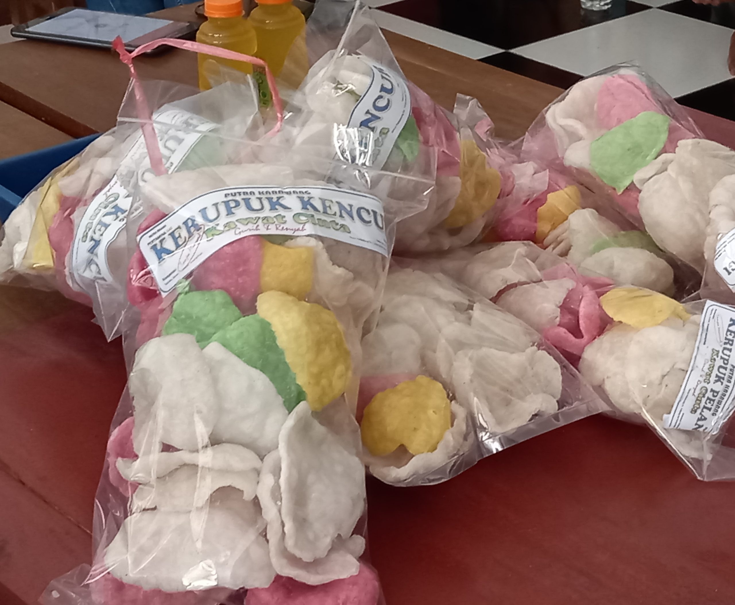 Krupuk olahan KWT punya rasa yang khas dan diolah dari bahan lokal. Mulai dari tepung tapioka, kencur dan bumbu dapur lainnya. Bentuknya pun unik yakni berbentuk hati. Kerupuk ini masuk dalam kelompok Kerupuk Melarat yakni kerupuk yang diproduksi tidak menggunakan minyak tetapi disangrai menggunakan pasir. Tentu saja pasirnya sidah dibersihkan.