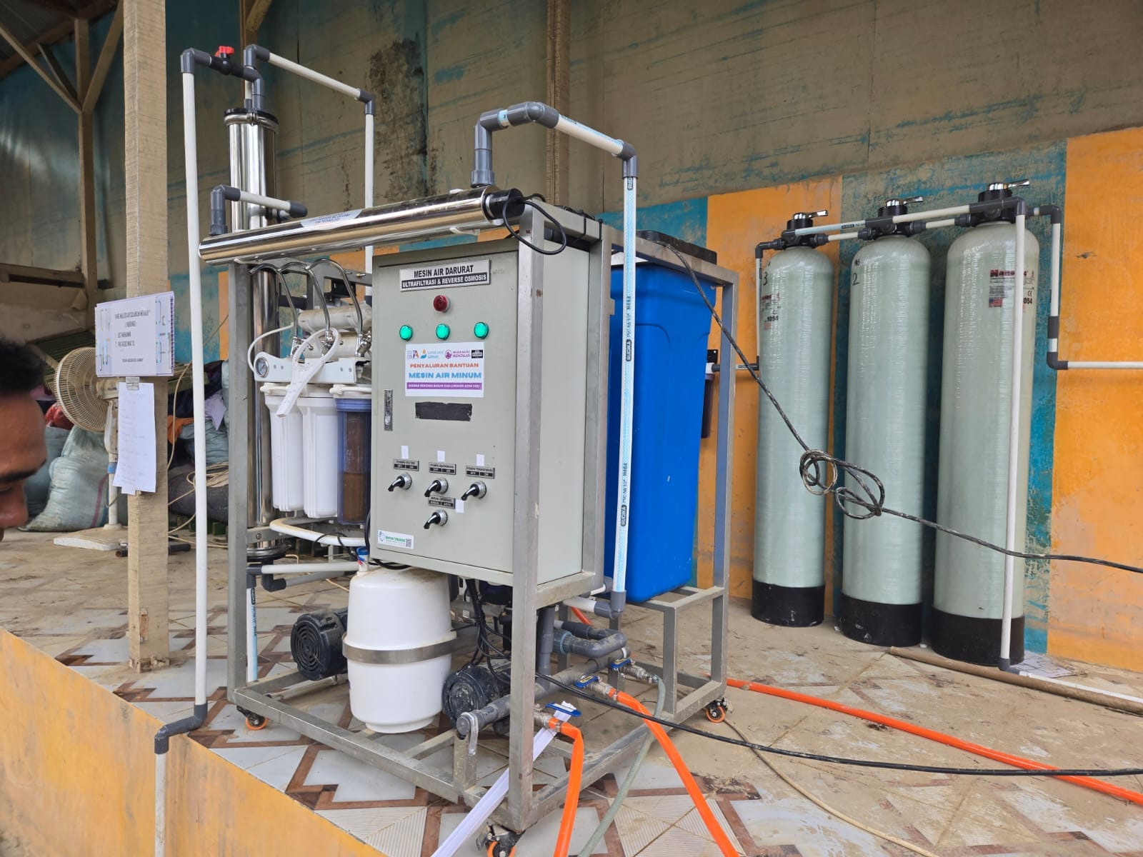 Bantuan yang disalurkan berupa alat penjernih air, air minum layak konsumsi, serta mushaf Al-Qur’an untuk masyarakat terdampak.